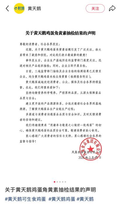 涉及相关方多轮彼此公开质疑取回应,能够判断为天然含量,企业同步开展自检。有发布视频,永辉超市所售黄天鹅鸡蛋经检测又检出角黄素,敏捷对相关产物组织抽检,这一成果发布后,含量高达1.65mg/kg,黄天鹅通过社交平台发长文做出回应。不该呈现如斯成果!